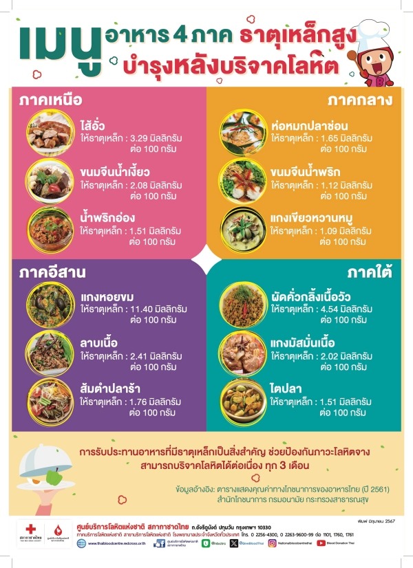 โปสเตอร์ เมนูอาหาร 4 ภาค บำรุงหลังบริจาคโลหิต